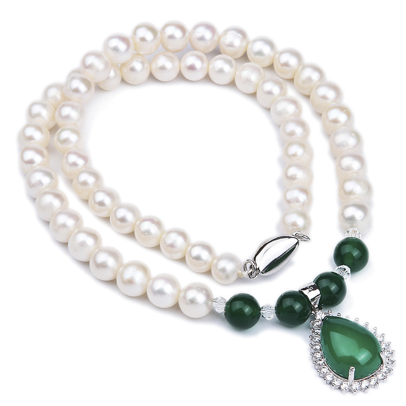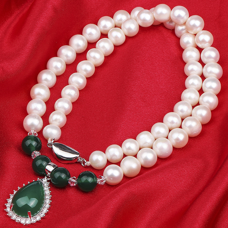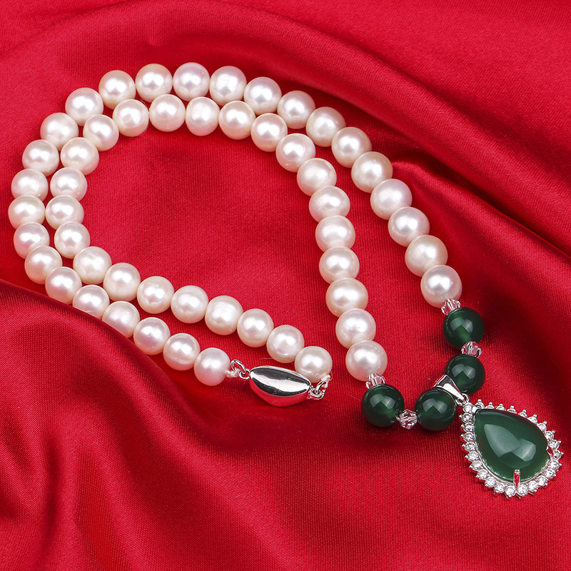 母亲节礼物套装 淡水天然珍珠项链近正圆绿玛瑙吊坠送妈妈